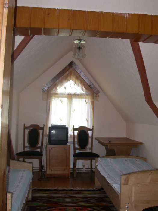 - Тримісний (5 номерів) — двоспальне та односпальне ліжка, телевізор, вішак. 2 санвузли на поверсі — душ, туалет, умивальник.